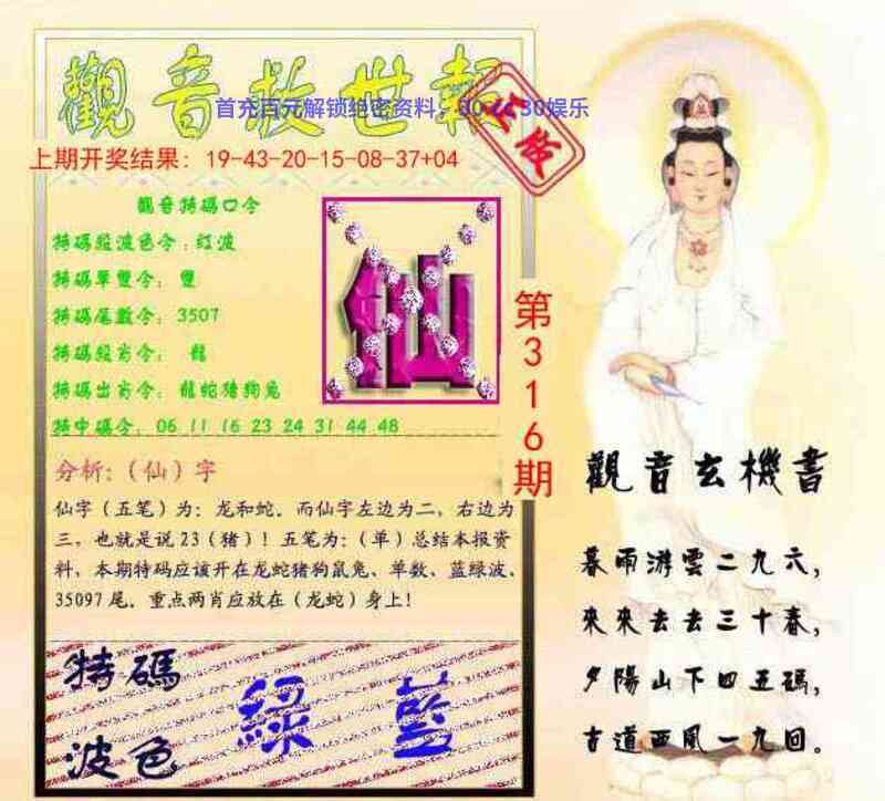 | 316期 | 虎 | 红单 | 3尾 | 马24准 |